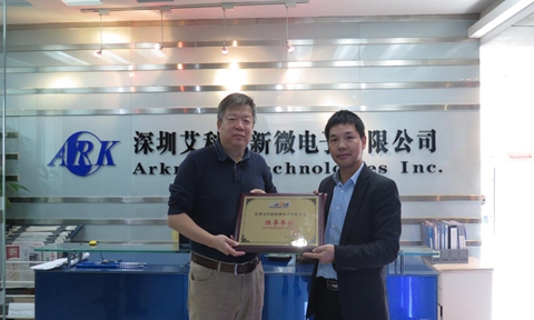 深圳艾科创新微电子有限公司首席执行官石岭博士(左)汽车电子协会授牌